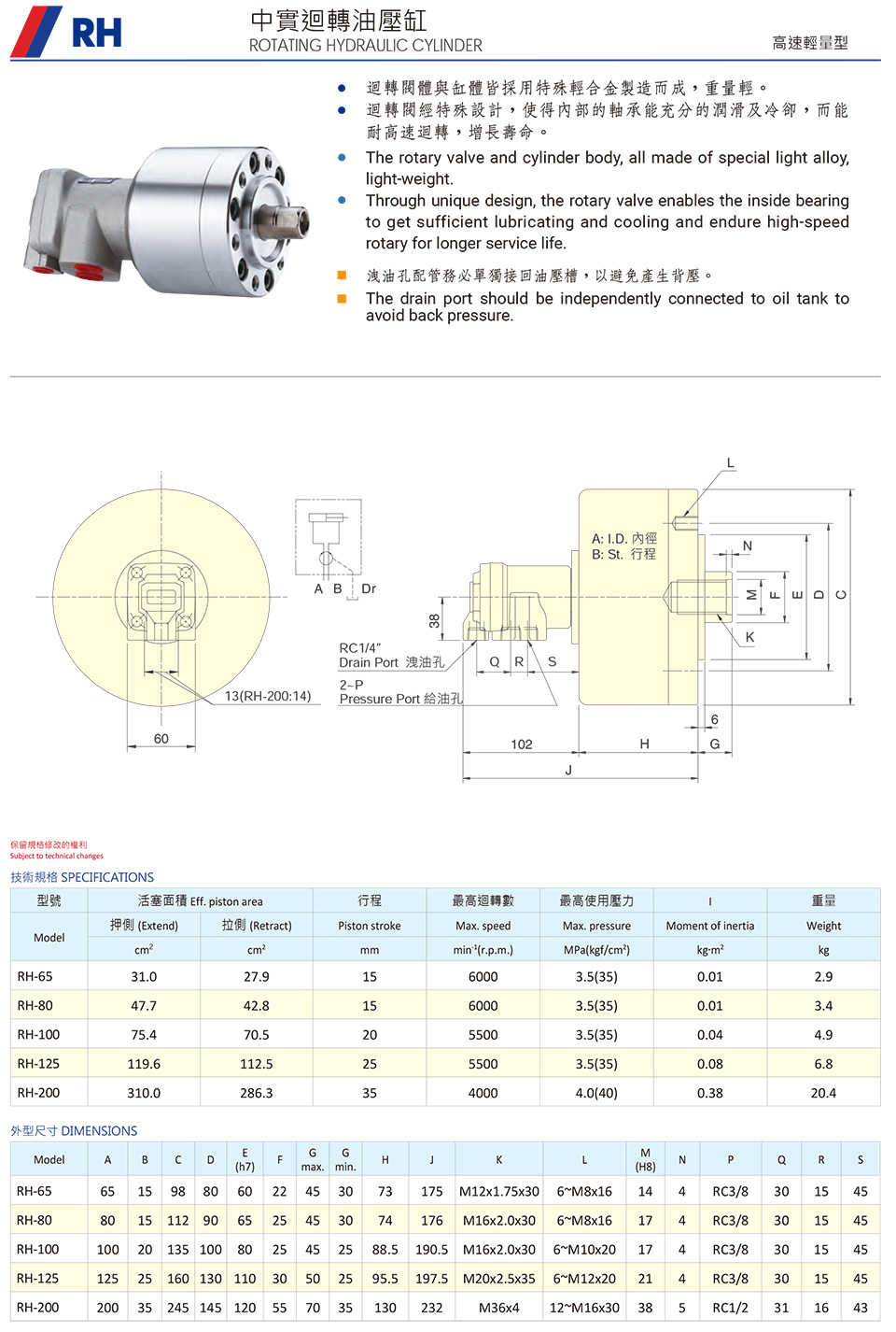 RH 中實(shí)迥轉(zhuǎn)油壓缸